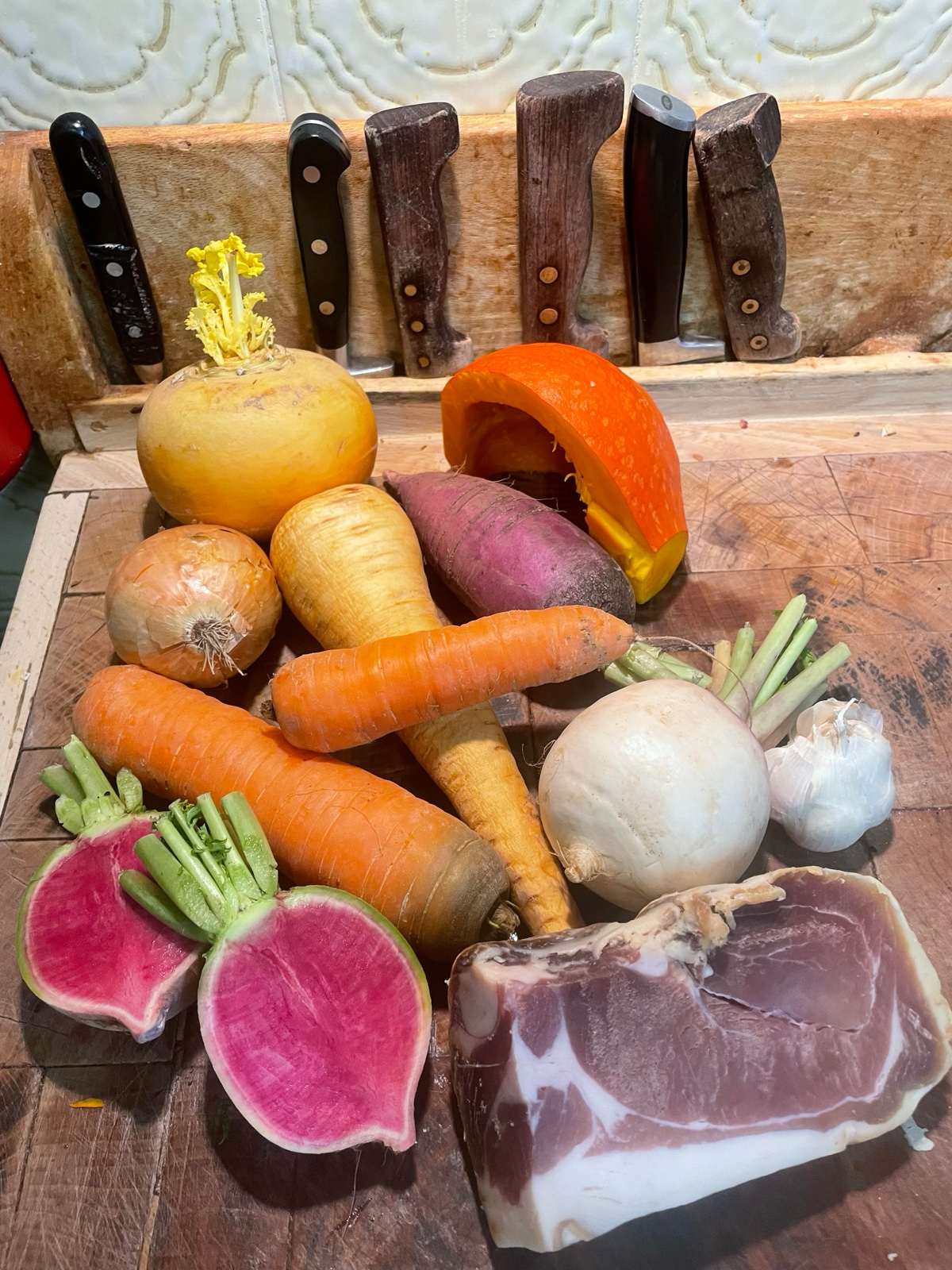 Mais l’Aubrac, c’est aussi la viande bovine élevée sur les pâturages, les charcuteries artisanales, les fromages de Laguiole, sans oublier les soupes de légumes anciens, les farçous et quelques desserts de fêtes qui subliment les produits simples du territoire. Lors des dîners que nous pouvons vous proposer, un menu d’hiver peut ainsi s’articuler autour d’une soupe de saison aux légumes locaux, suivie d’un plat de terroir comme l’aligot accompagné d’une viande d’Aubrac, avant de conclure par un dessert réconfortant et gourmand.